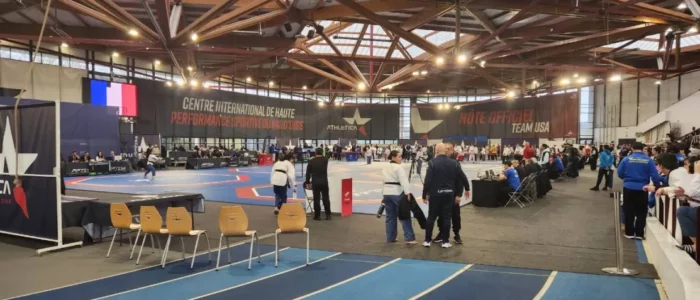 > Sébastien, engagé en -60, ne passe pas le 1er tour. La pression de l’événement entraîne l’oubli d’un mouvement, révélant un manque de préparation spécifique pour cet exercice de style très codifié qu’est le championnat de France. Une expérience intéressante et formatrice pour la suite.